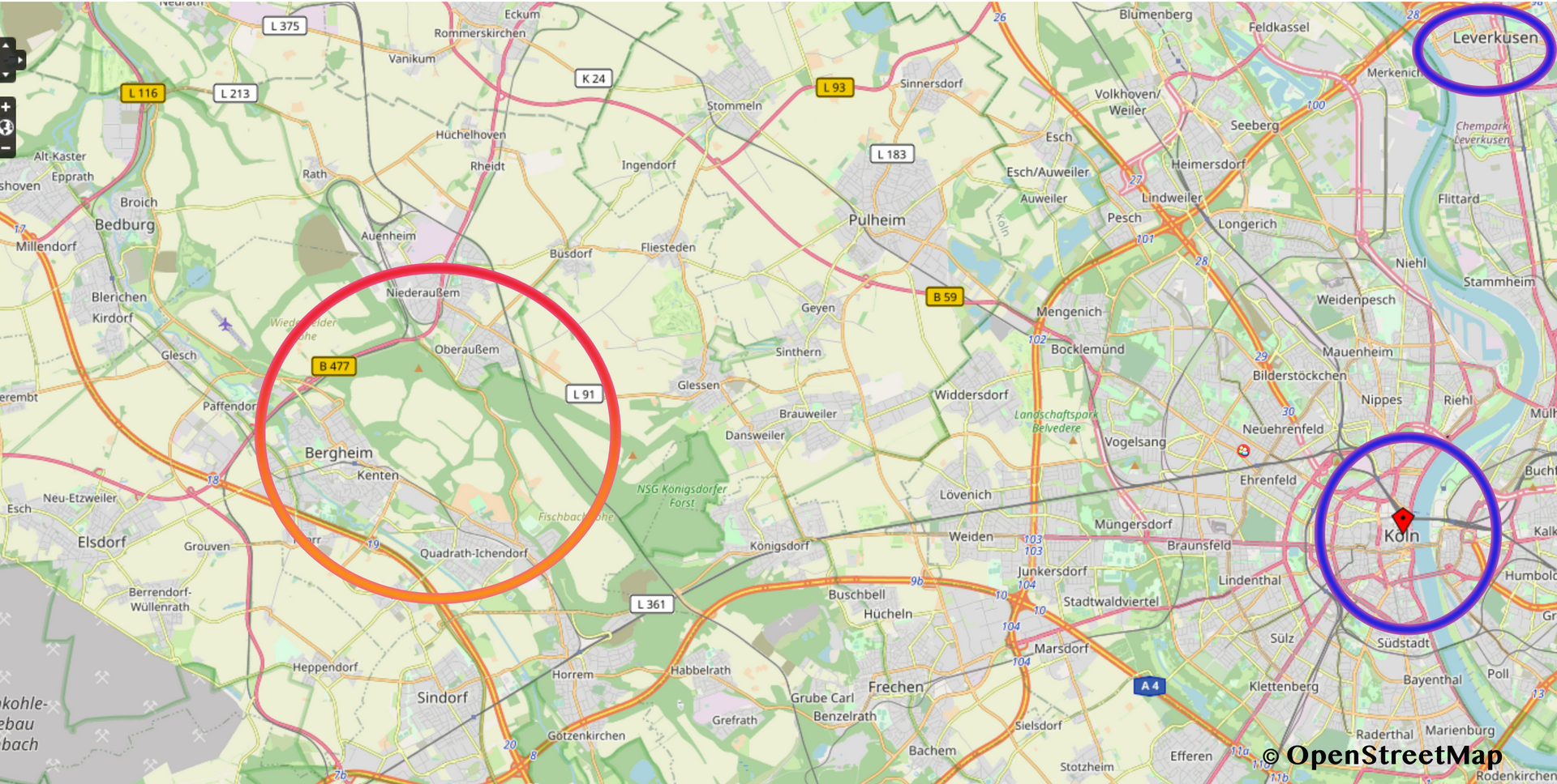 Da der Braunkohle-Tagebau zwischen den Stadtteilen Niederaußem, Oberaußem, Quadrath-Ichendorf, Kenten und Bergheim-Mitte sich an keine offiziellen Gemarkungsgrenzen hielt, sondern durch die im Boden liegende Kohle bestimmt wurde, gab es für das Gebiet keine eindeutige historische oder geographische Bezeichnung.